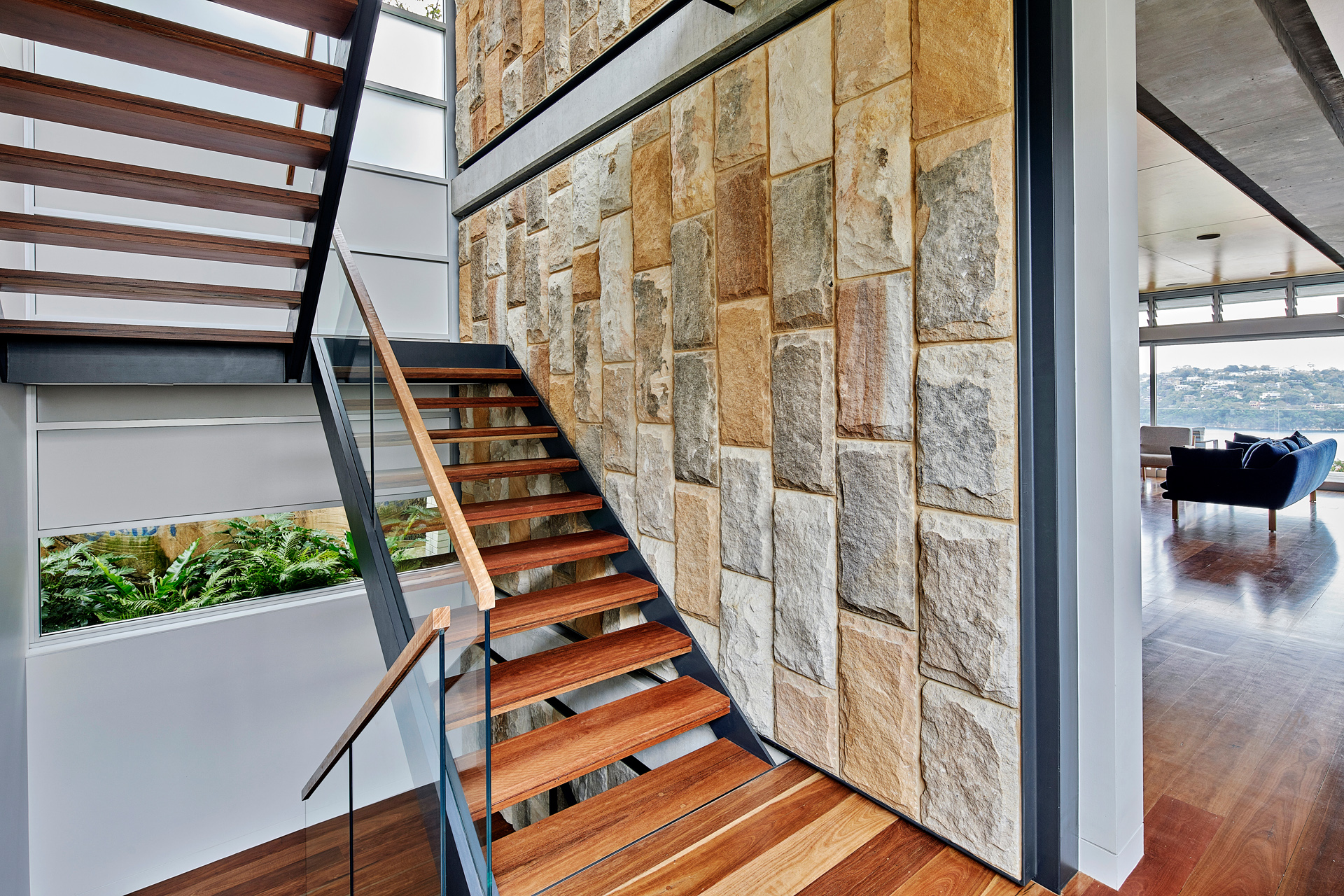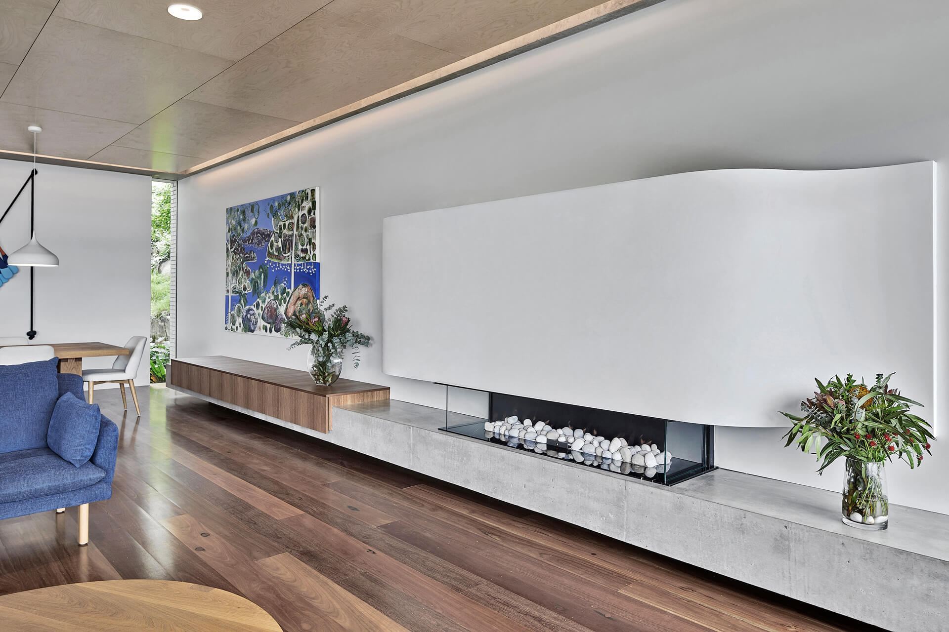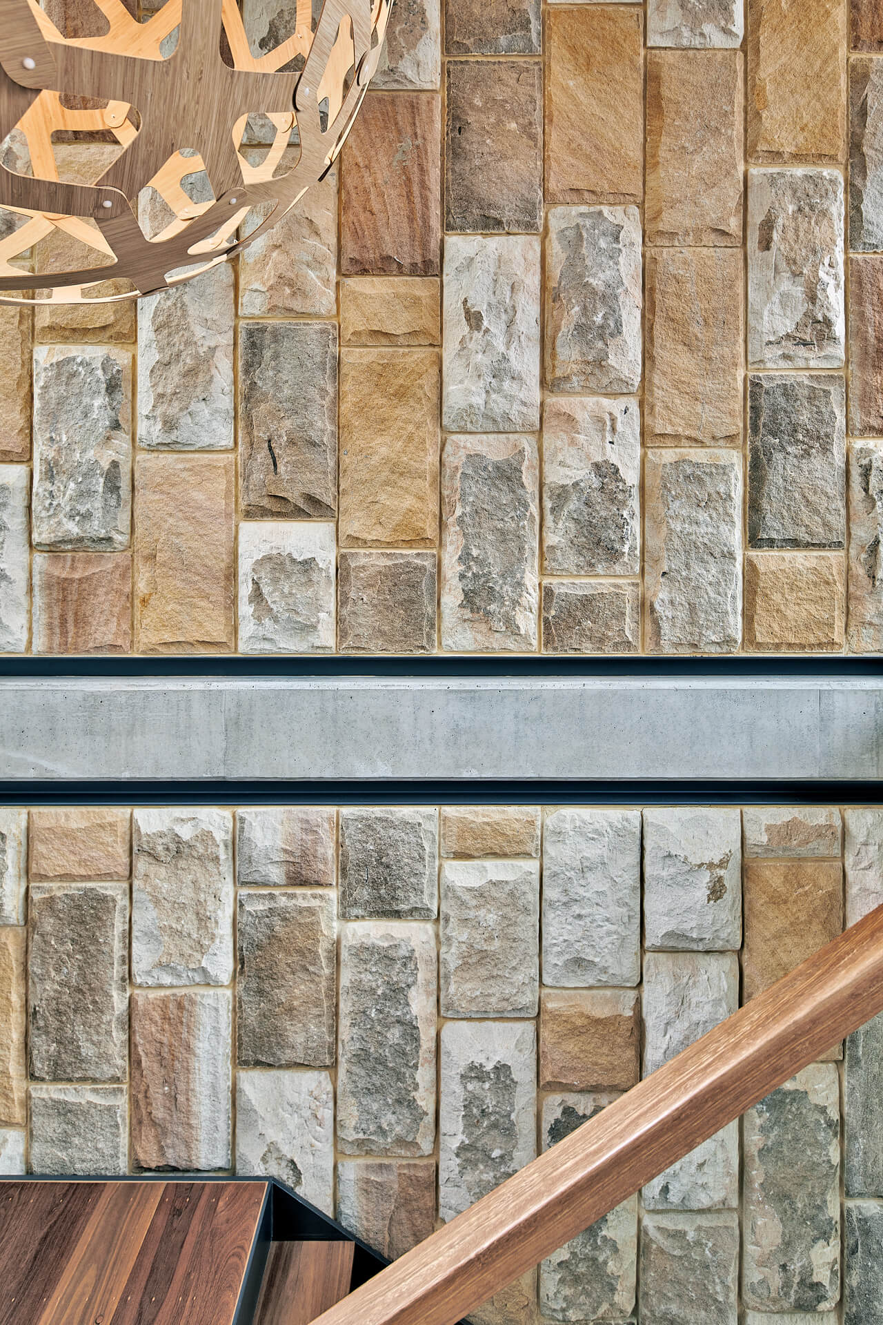 The materials are a combination of off-form concrete, brick and sandstone paired with recycled timber and plywood elements to provide warmth and texture. All the joinery, lighting and interiors were designed and documented by Utz Sanby.