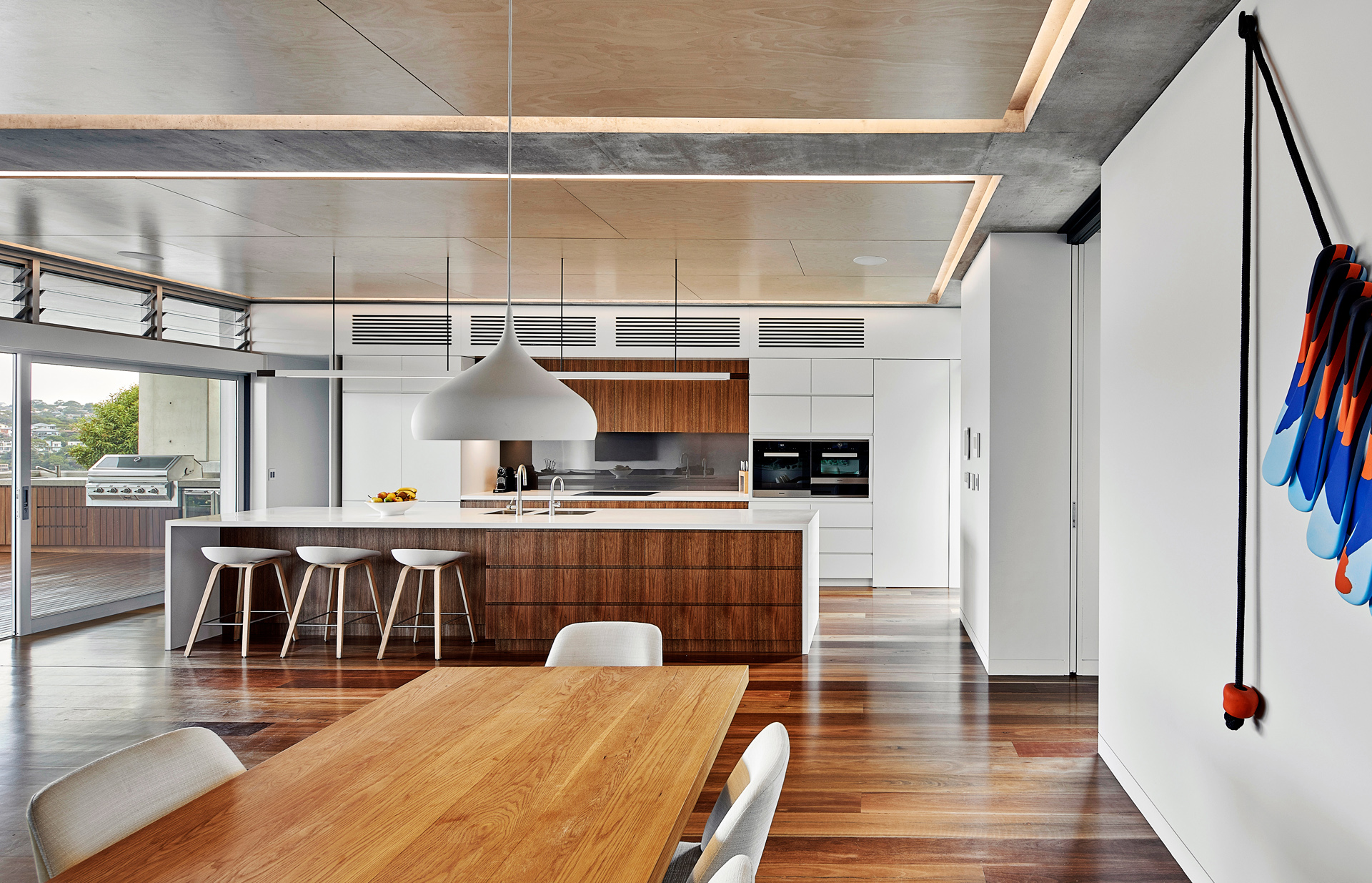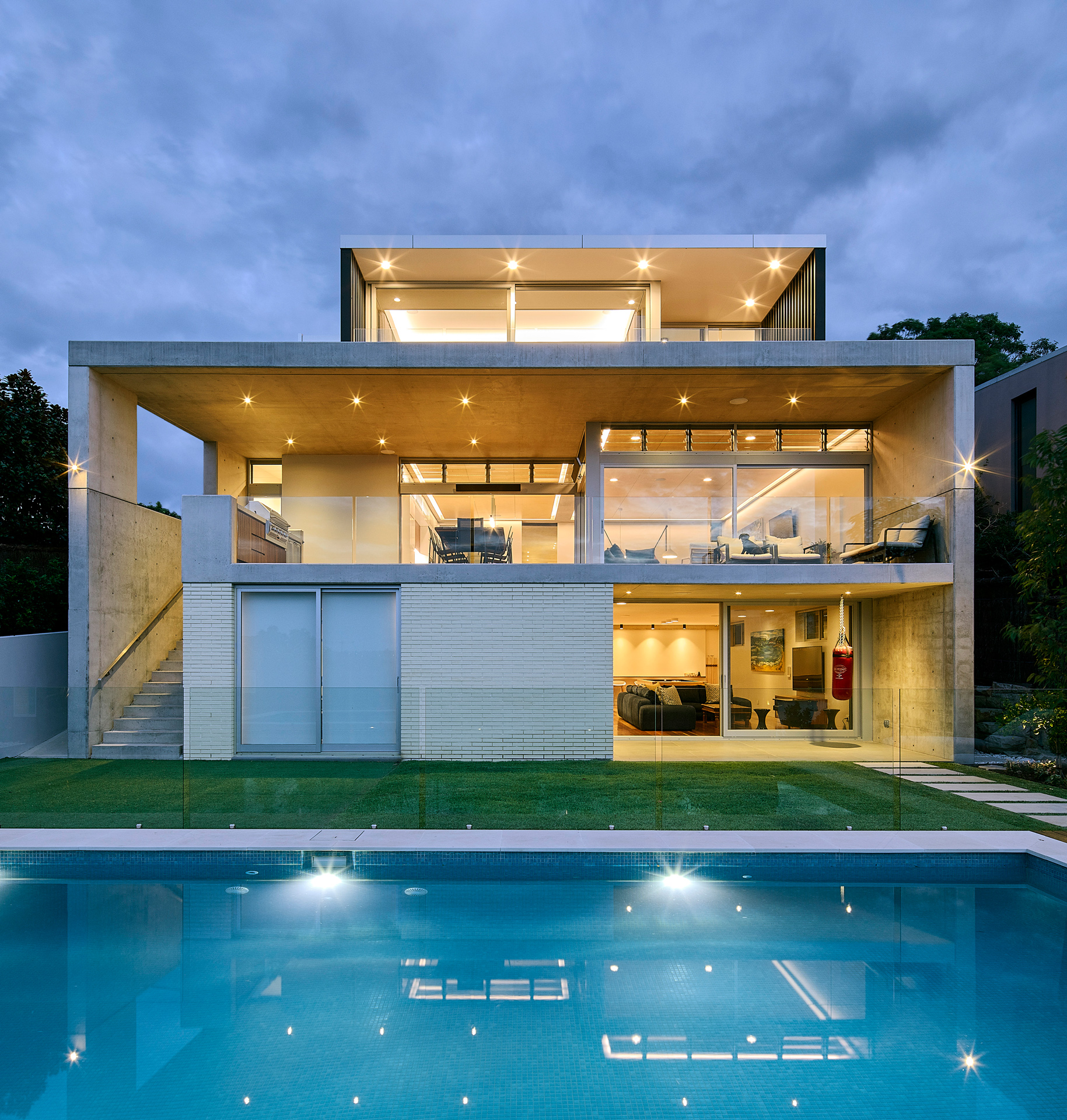 This project is a modern family home with spectacular views over Middle Harbour. The site slopes gently to the rear boundary and has a northern aspect.