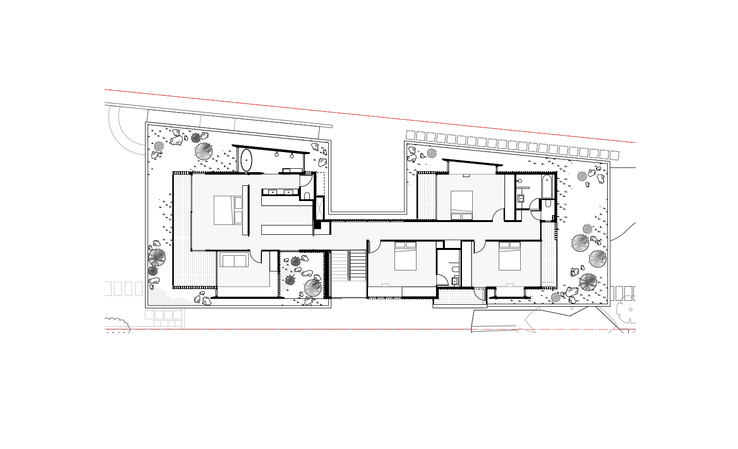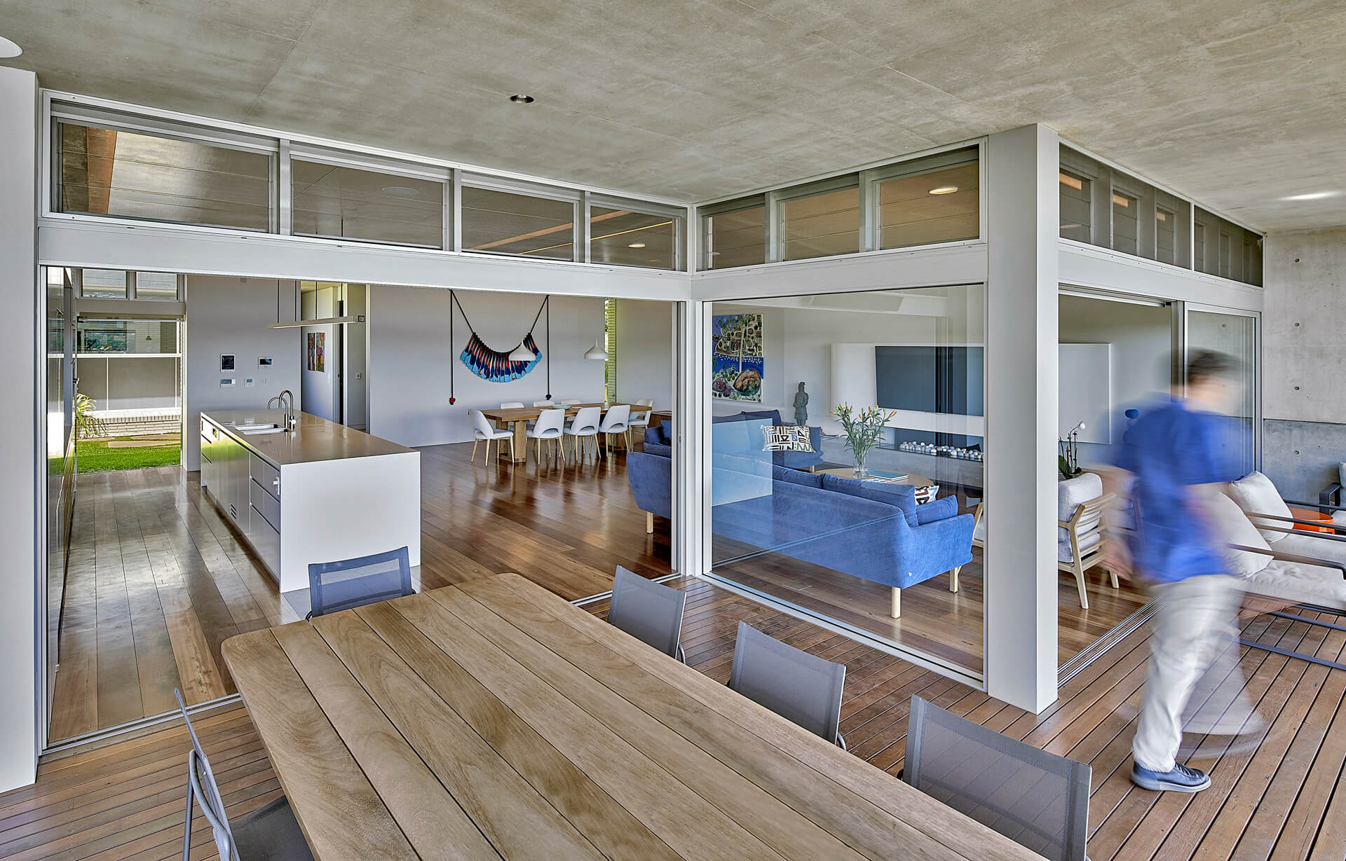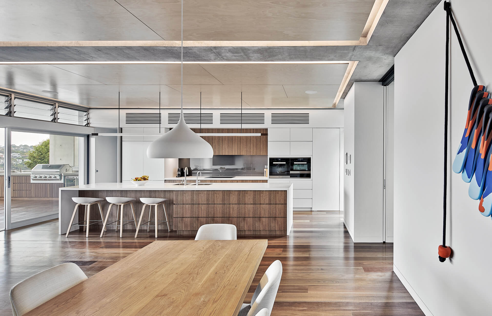 Having designed a previous new home for this family of five, we had a clear understanding of their likes and dislikes. The home is pared back and functional, including separate living areas for teenagers adjacent to the pool, open plan living and entertaining areas facing the view and a separate parents retreat.