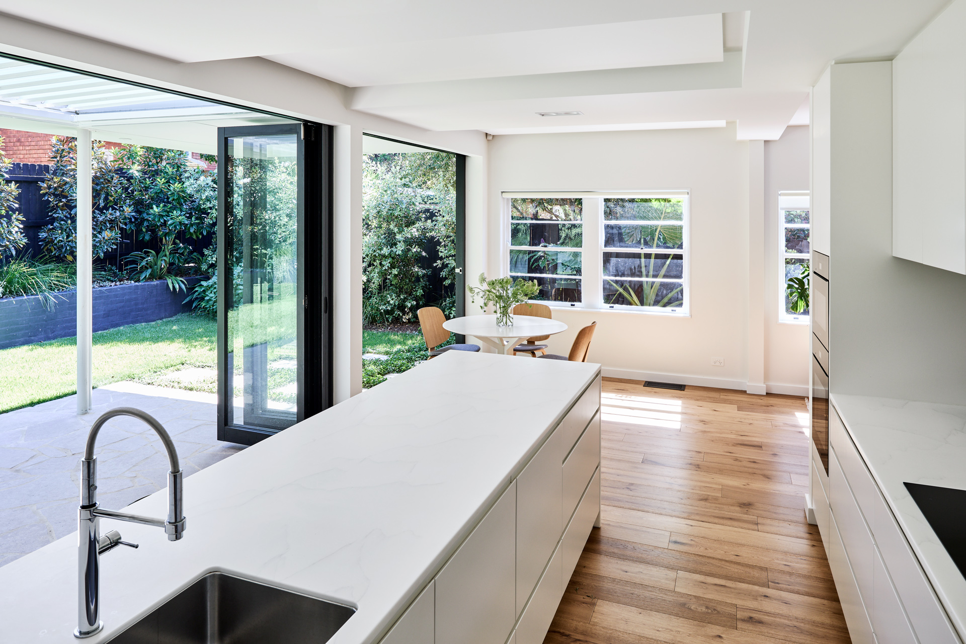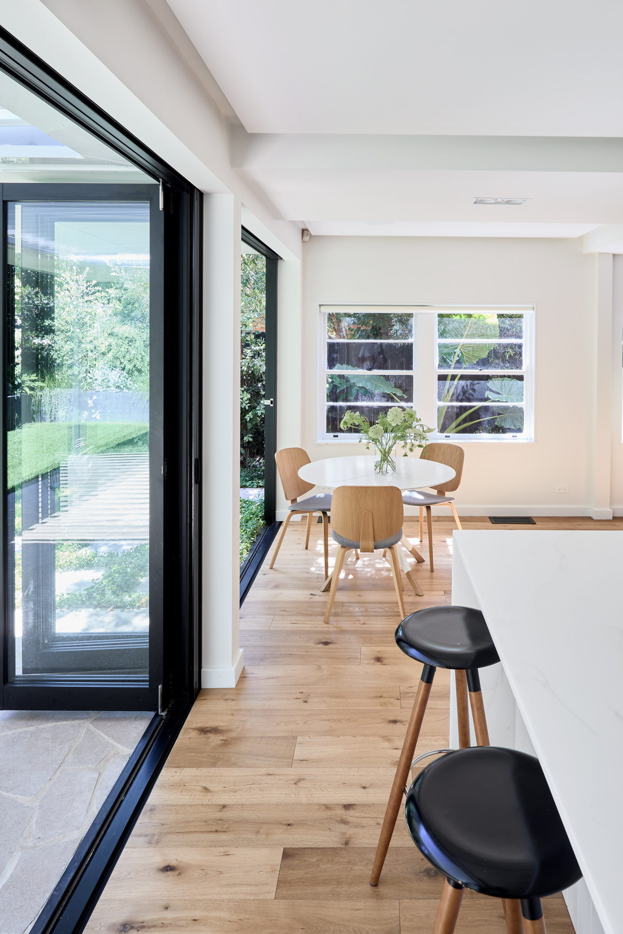 Converting a duplex into a single residence for a young family, with a focus on modernising the home with a fresh new material palette, adding plenty of natural light and creating an indoor /outdoor link.